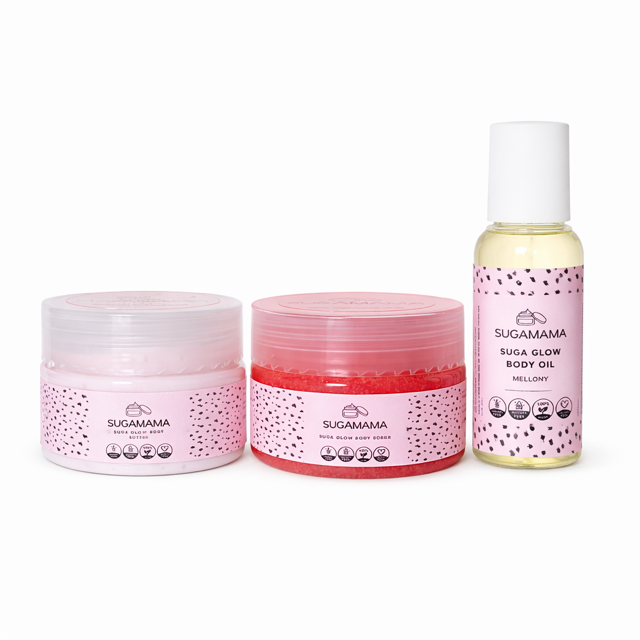This bundle is perfect if you’re new to SugaMama and want to experience our signature formulations, or if you’re looking for a convenient, travel-friendly self-care set. Each product works beautifully on its own, but together they create the ultimate glow routine for smooth, hydrated, radiant skin.